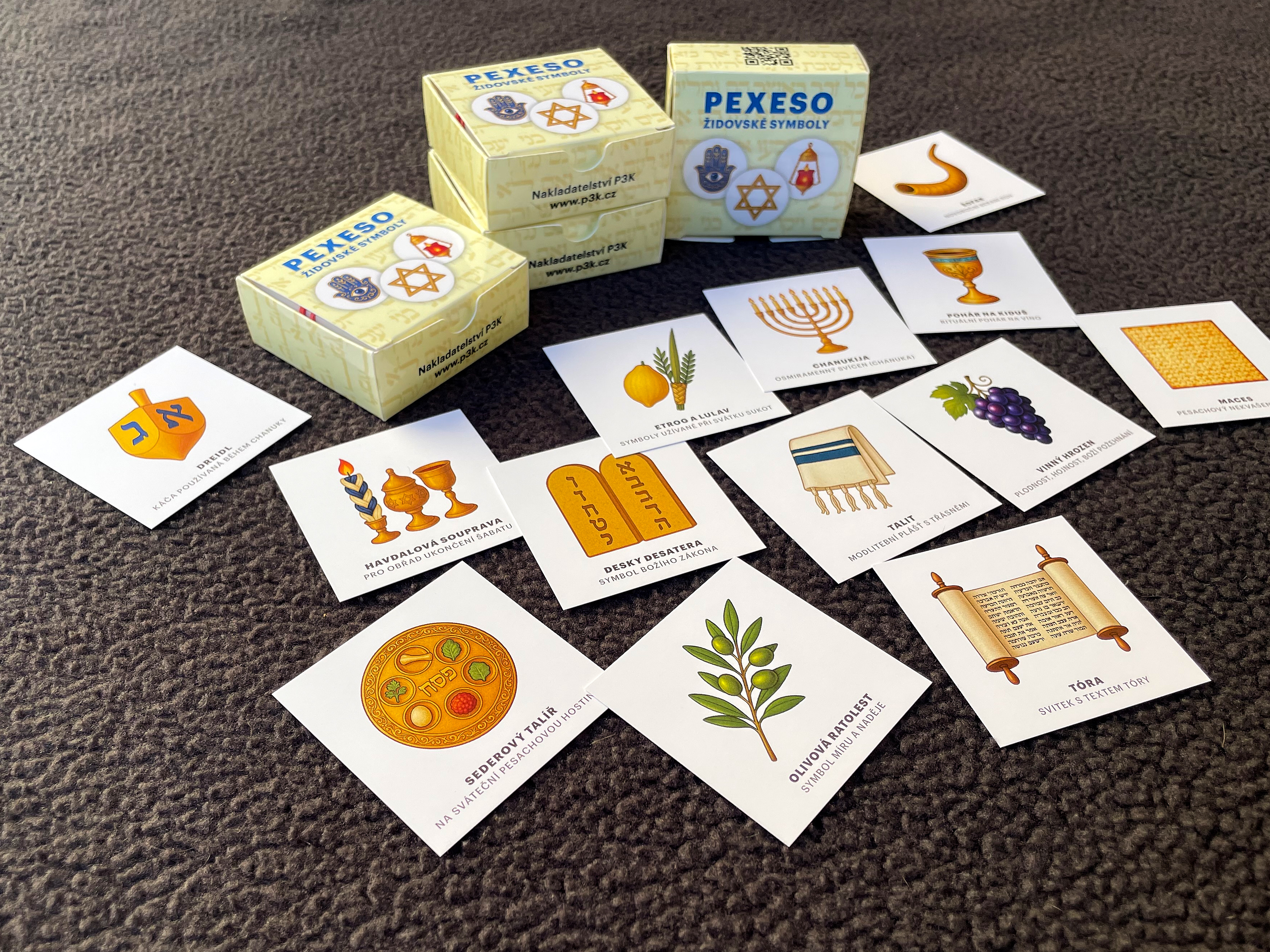 Představujeme vám pexeso židovských symbolů – čeká na vás „klasických“ 32 kartiček, na nichž objevíte nejen známé, ale i méně známé židovské symboly. A protože víme, že pexeso má být především radost ze hry:— kartičky jsou už nařezané,— uložené v pevné