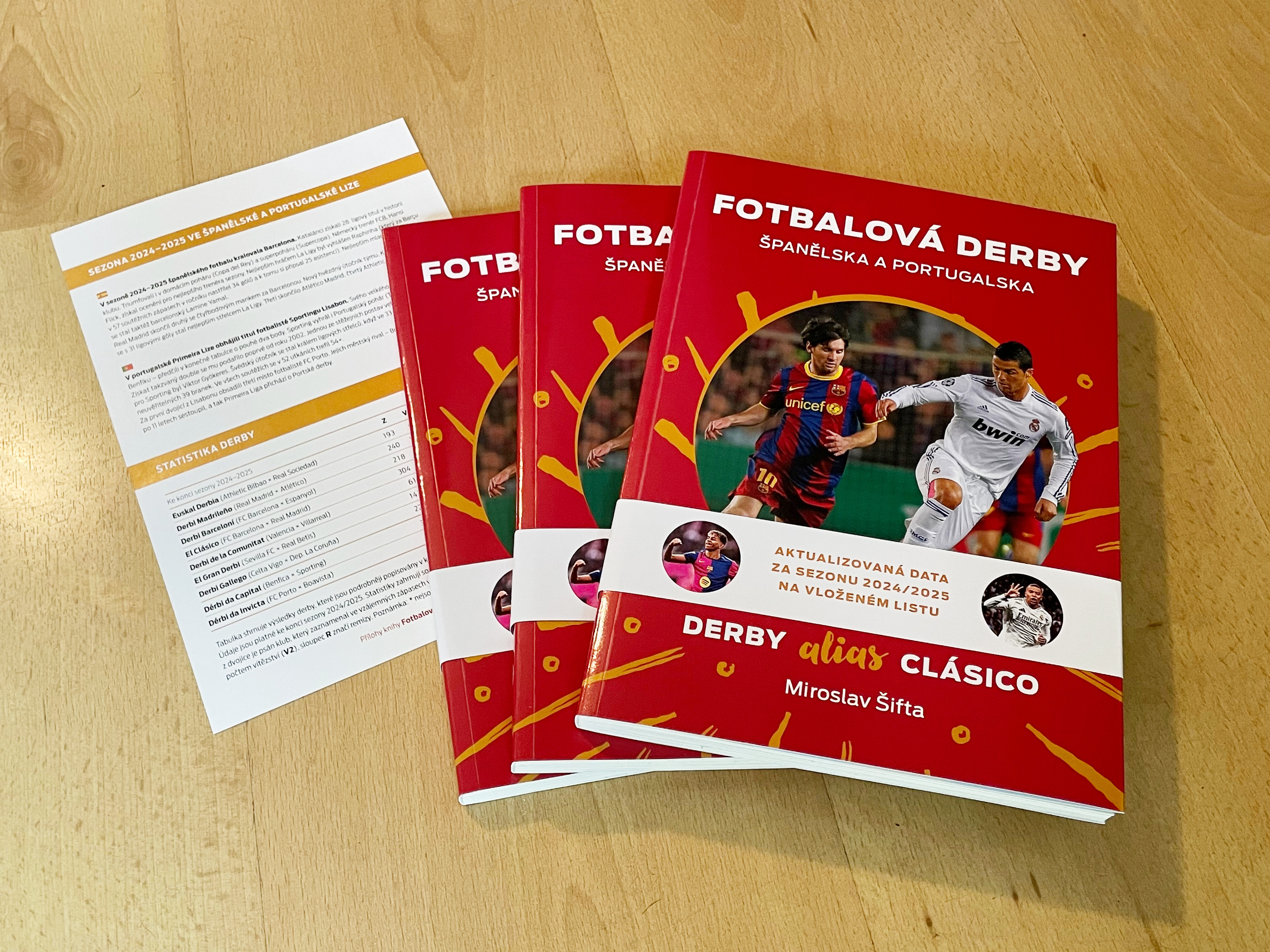 Rok utekl jako voda a kniha Miroslava Šifty Fotbalová derby Španělska a Portugalska ožila novou kapitolou své cesty. Aby žádný fanoušek nepřišel o důležité okamžiky poslední sezony 2024/2025, připravili jsme speciální stránkovou přílohu vytištěnou na kvalitním, těžším papíru. Díky ní kniha
